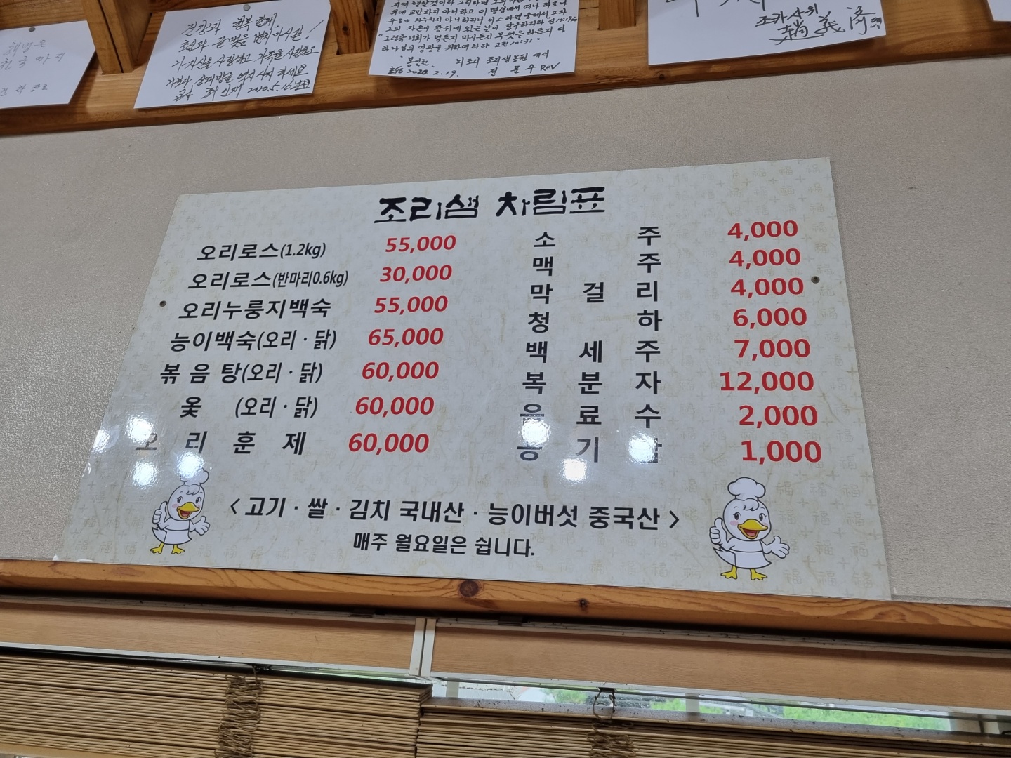저희가 주문한 메뉴는 대표매뉴 "오리누릉지백숙"과 오리로스(반마리 0.6kg)를 주문을 했어요! 사장님께 저희가 5명에서 가는데 어떻게 먹는게 좋겠냐고 여쭈어보니, 사장님께서 오리누릉지백숙은 4인분이니깐, 여기에 더해서 오리로스(반마리 0.6kg)을 먹으면 된다고 하셔서 사장님 말씀대로 주문을 해봤어요!!