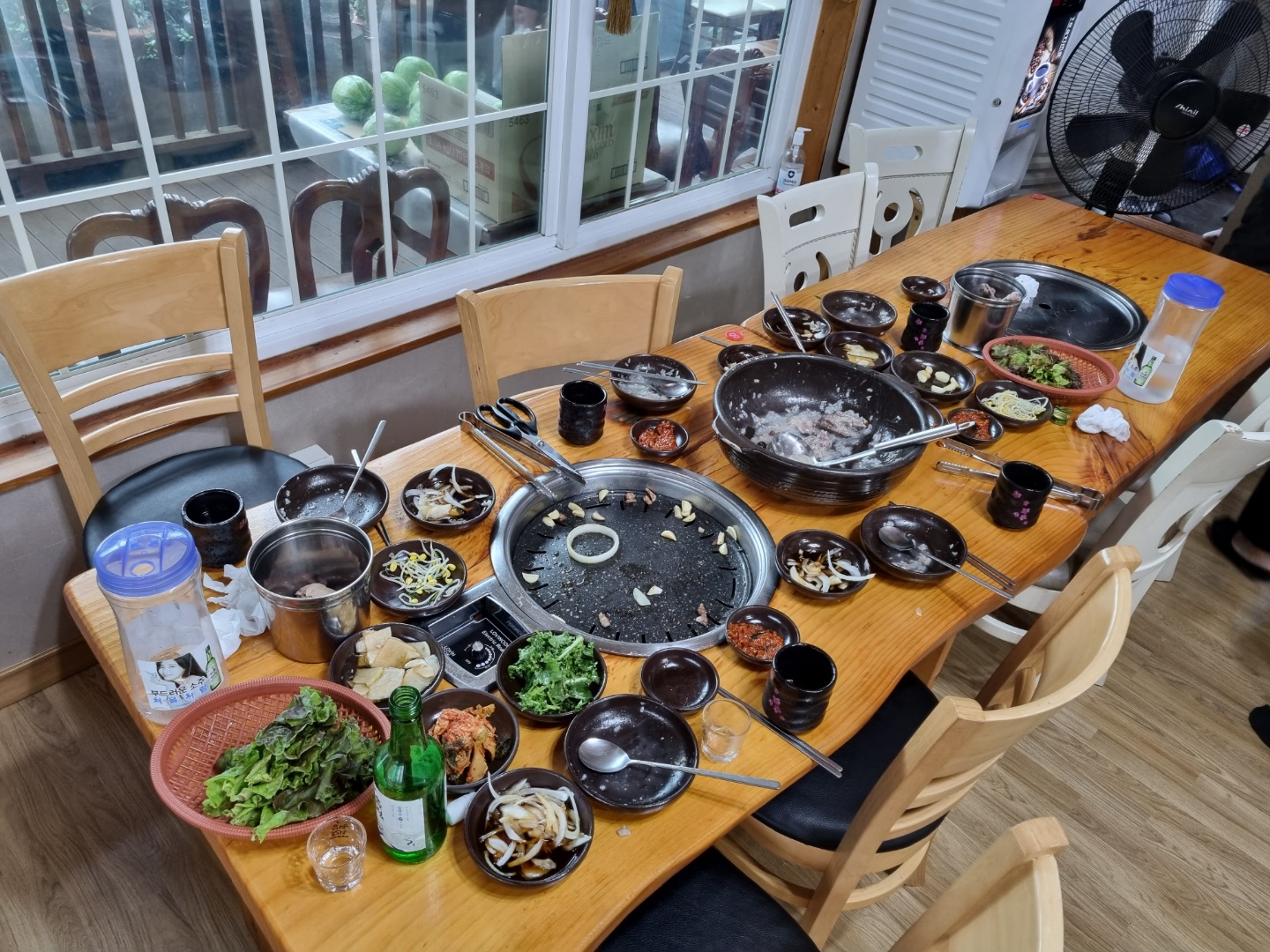 우리가 주문한 첫번째 대표메뉴 "오리누룽지백숙"이 나왔어요! 맛은 오랜만에 오리 백숙을 먹으면서 몸보신 하며, 건강해지는느낌이 들었어요~ 비주얼이 굉장하죠?ㅋㅋ 가마솥 밑에가 로스구이 굽는 위치 인데 크기가 굉장합니다.
