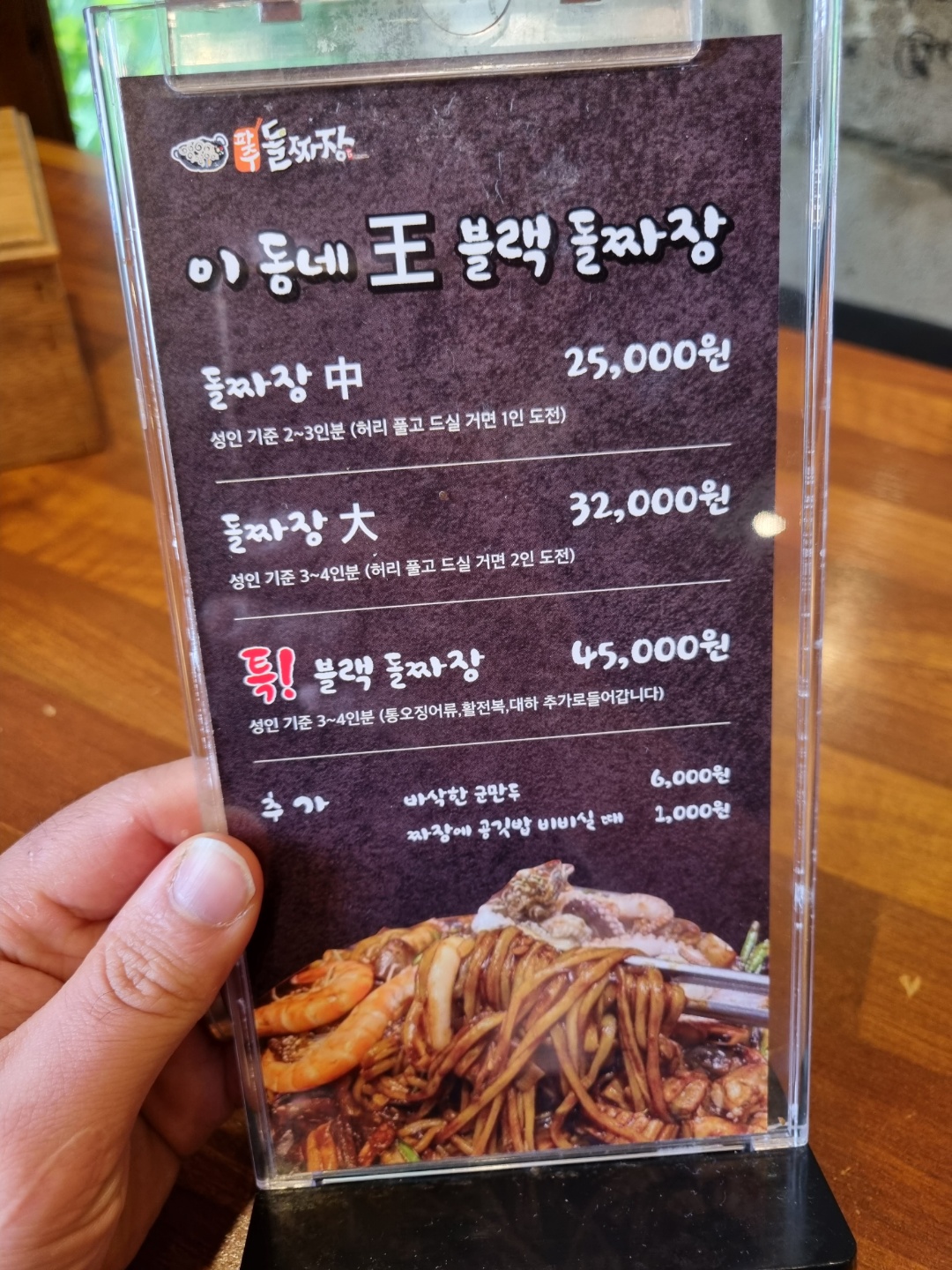"파주돌짜장"을 먹으려면 대기를 해야하는다는 이야기가 있었지만, 저희는 브레이크 타임 끝나고 바로 가서 바로 자리에 앉아서 주문을 할수 있었습니다^^v 저희는 대표메뉴 "돌짜장 中" 주문을 했습니다~