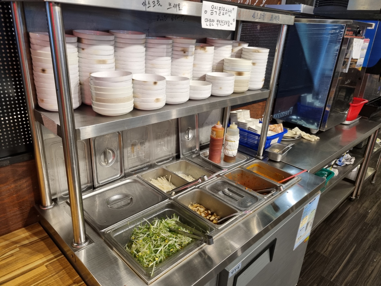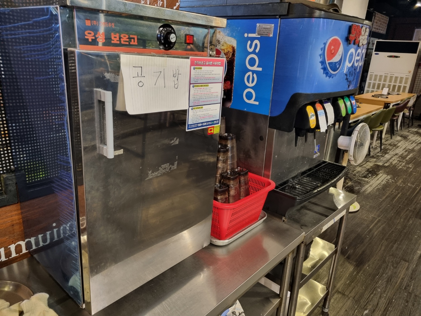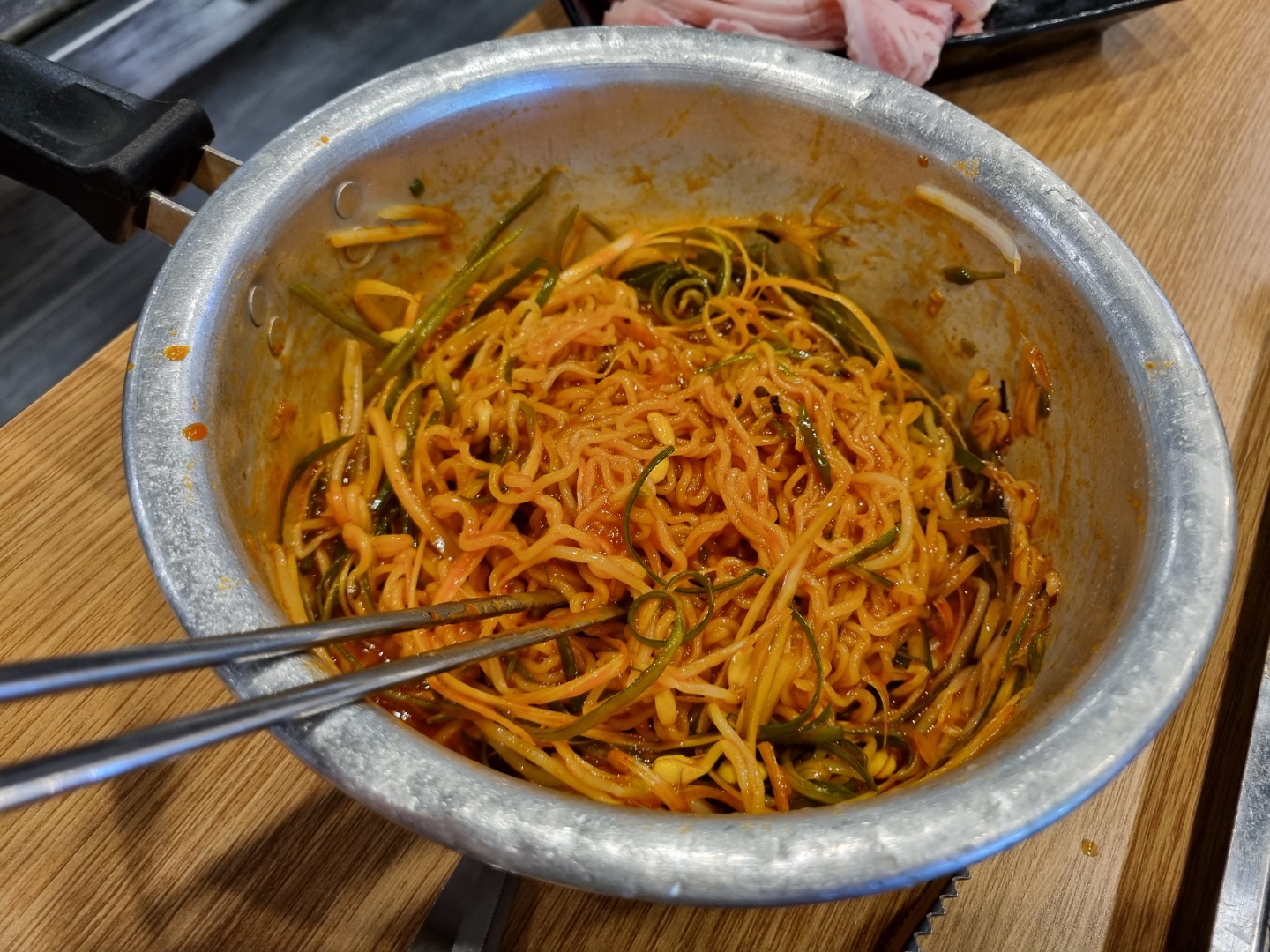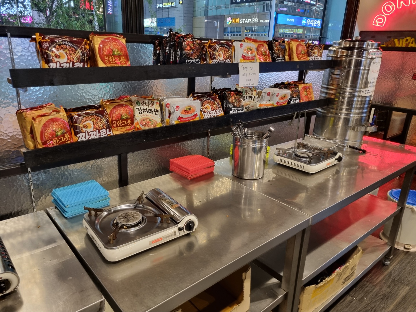 돈판은 모든게 셀프예요~ 공기밥, 탄산음료, 그리고 여기만의 매력 포인트! 비빔라면부터 시작해서 짜파게티, 국물라면~~~을 종류별로 무한으로 먹을수 있습니다ㅋㅋ