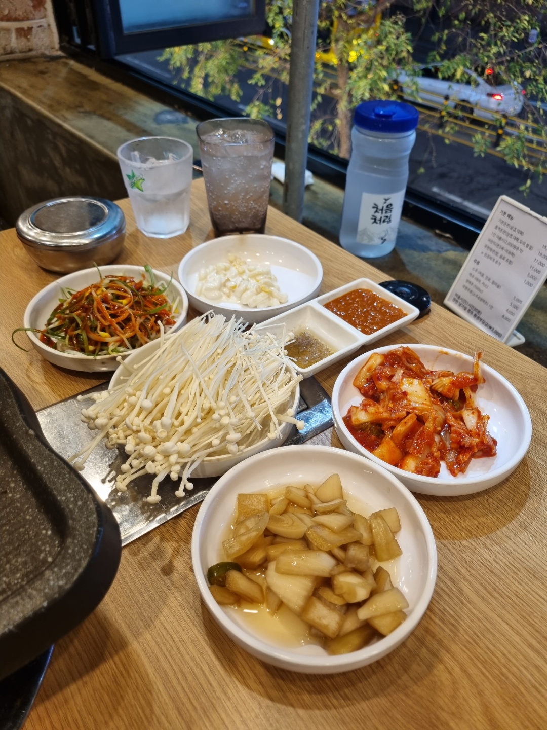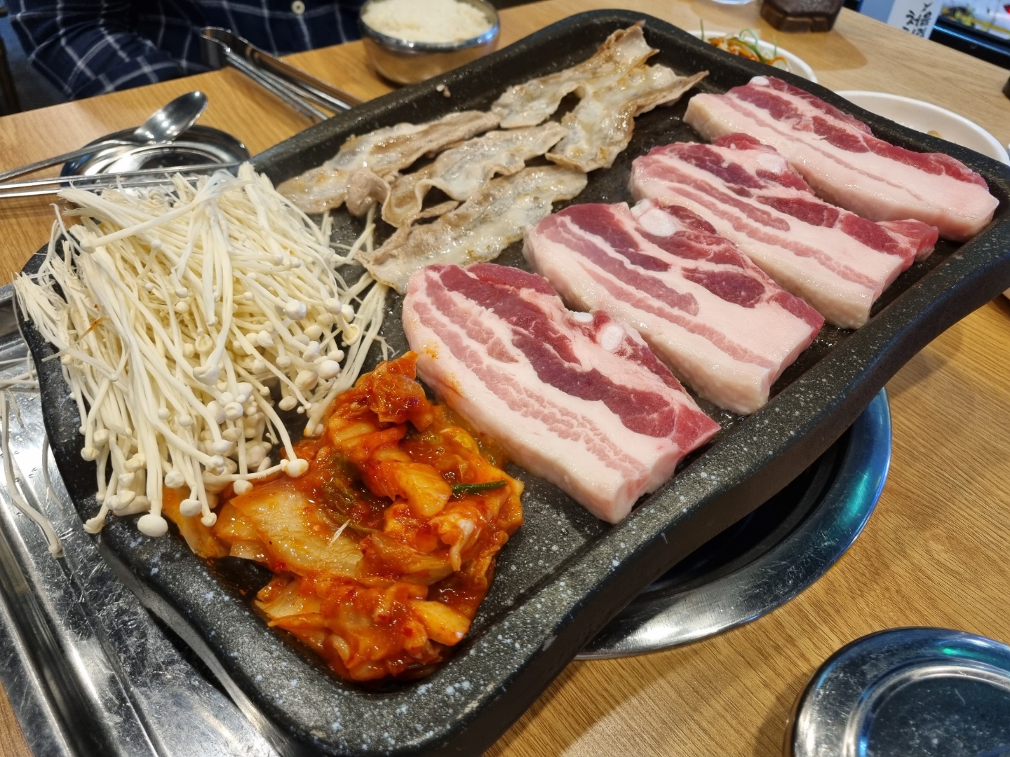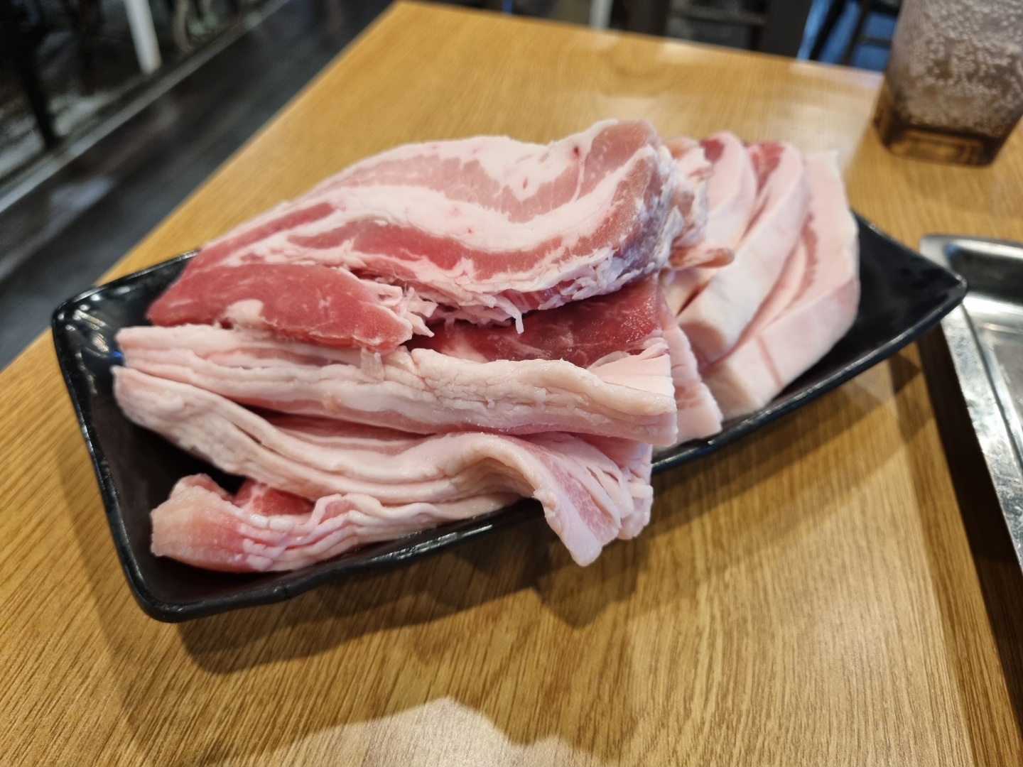 기본 메뉴에서 "기본돈판(삼겹,대패)" 1인 주문 했어요^^ 그리고 여기가 좋은점이 2000원만 추가 하면 혼자 식사도 가능하다는점!