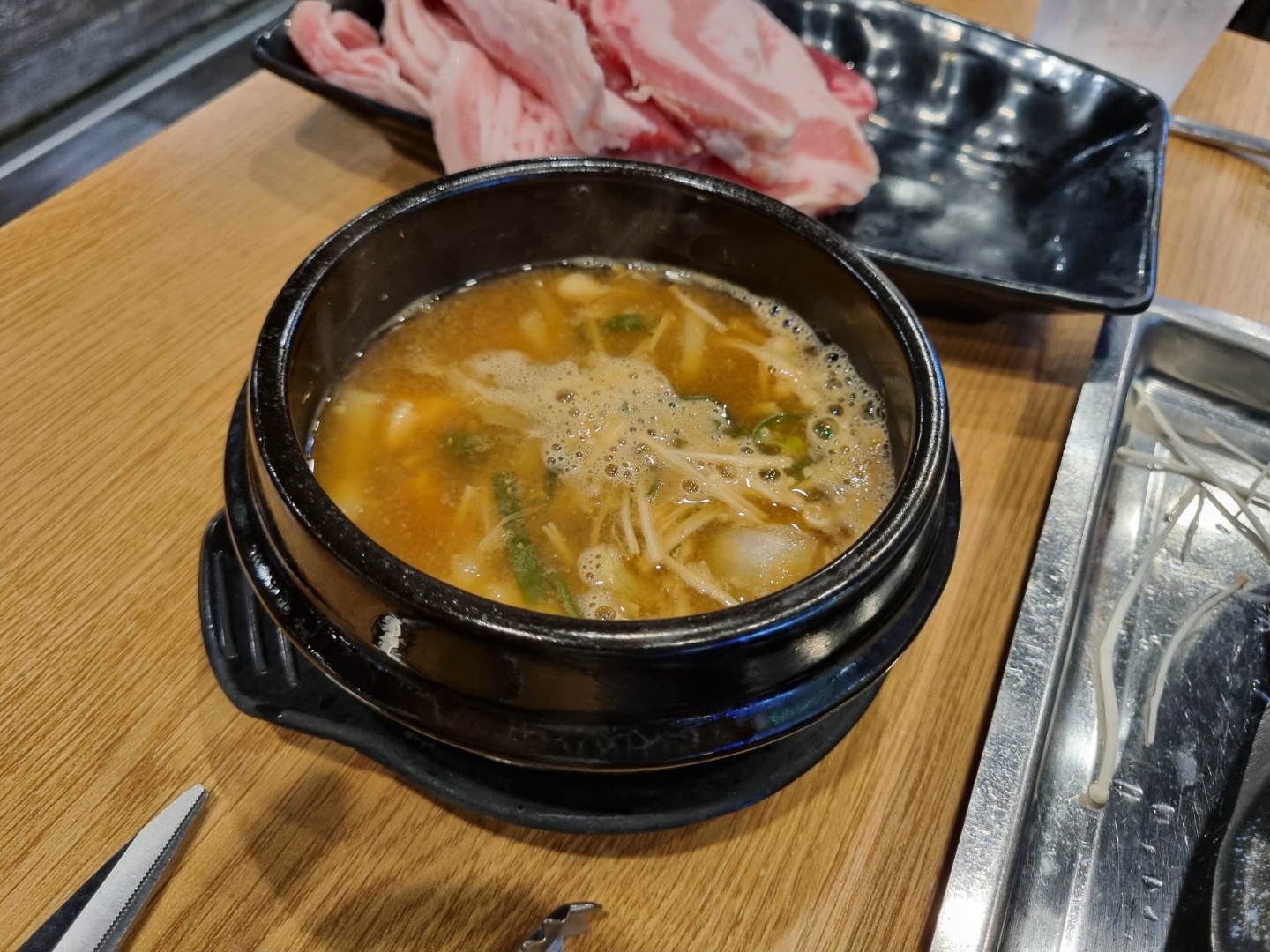 돈판의 매력 포인트 또 나옵니다~ 된장찌개가 진짜 맛있는데~~ 이것도 가격에 포함 되어 있다는점!!! 굉장하지유?ㅋ